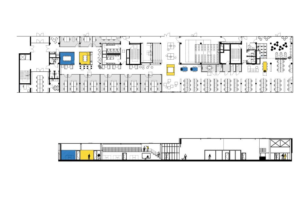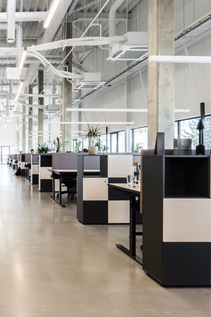 Interjero projektu siekiama sukurti nedidelį miestelį, užtikrinantį tiek socialinius, tiek darbo aplinkos poreikius. Prie pagrindinio įėjimo sukuriama „Atl space“ bendruomenės susibūrimų vieta – pakopinė antresolė. Interjero projektu siekiama sukurti balansą tarp dviejų skirtingų darbo principų – atviras biuras ir uždarų kabinetų erdvės. Taip formuojami atskiri tūriai, kurie apjungia patalpas kurios reikalauja privatumo ir tuo pačiu bendrąsias erdves skaido į nišas kuriose grupuojamos atviros darbo vietos.