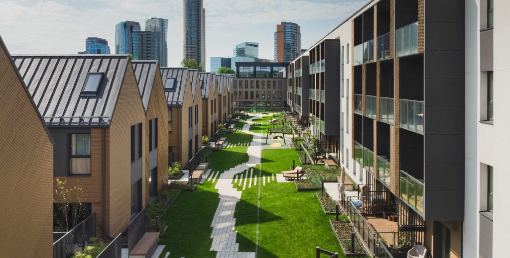 Suprojektuotas kvartalas – tai dar viena tūrinė ląstelė Šnipiškių rajono raidoje. Bendra urbanistinio užstatymo koncepcija tarsi iš trijų skirtingų dalių, t. y. keturių aukštų stambesnio perimetrinio užstatymo daugiabutis gyvenamasis namas, susmulkinto sodybinio tipo tūriai su dvišlaičiais stogais, atkartojantys „Skanseno“ teritorijos motyvus ir pailgas uždaras vidinis kiemas, natūraliai įsiliejantis tarp šių tūrių kaip vientisa komplekso dalis. UAB „ERINAR“ vykdė komplekso projektavimo valdymo bei inžinerinių sistemų projektavimo darbus.