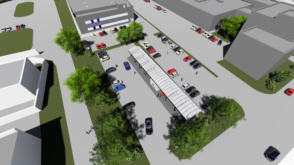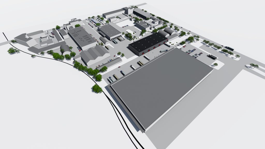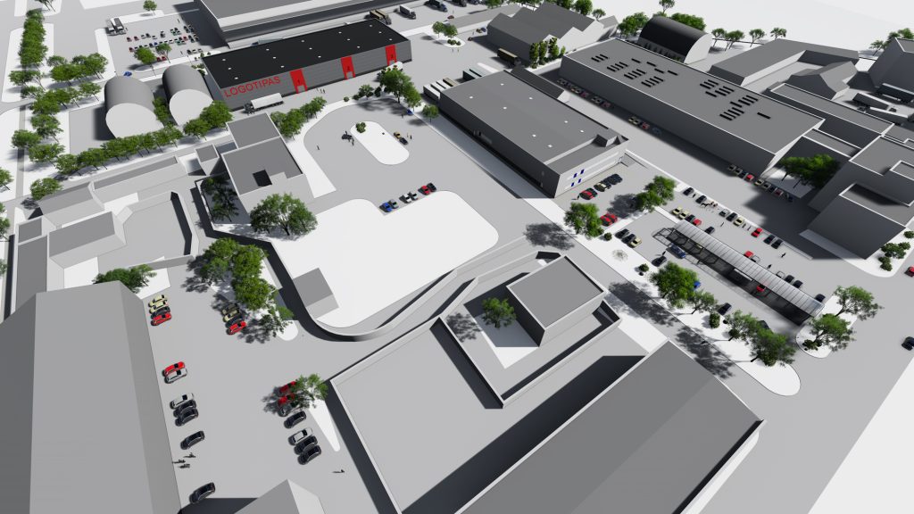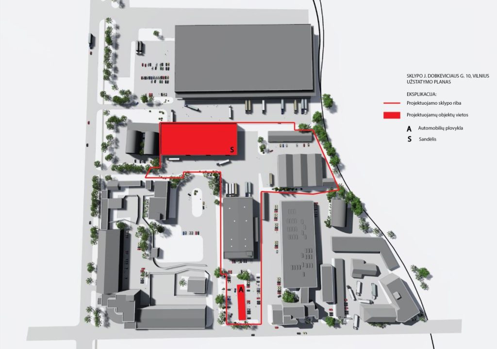 Planuojamas pramoninės teritorijos atgaivinimas. Šiaurinėje dalyje projektuojamas logistikos sandėlis, pietinėje dalyje savitarnos automobilių plovykla. Sandėlio architektūra ramių lakoniškų formų, pastatui reprezentatyvumo suteikia išryškintos vertikalios įėjimų zonos.